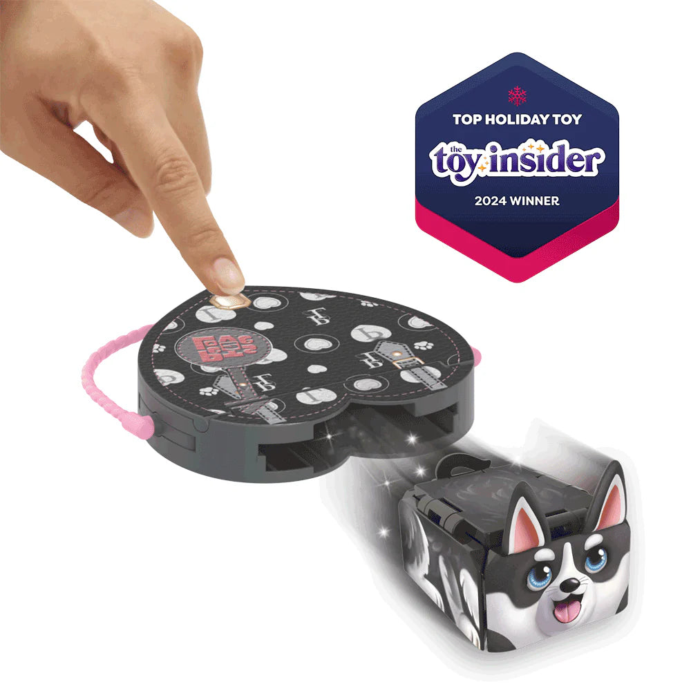 Housed in a stylish heart-shaped purse, simply press the button for your lovable pet to pop out and greet you!