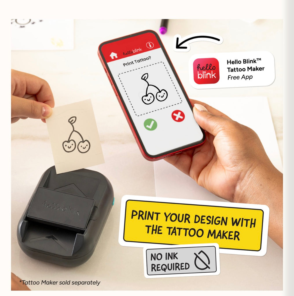 Unleash your imagination and create one-of-a-kind temporary tattoos with Hello Blink! This innovative tattoo maker is perfect for kids aged 8 and up, letting them design, print, and customize their own amazing tattoos effortlessly, whether for birthday parties, sleepovers, or just a fun afternoon of creativity.