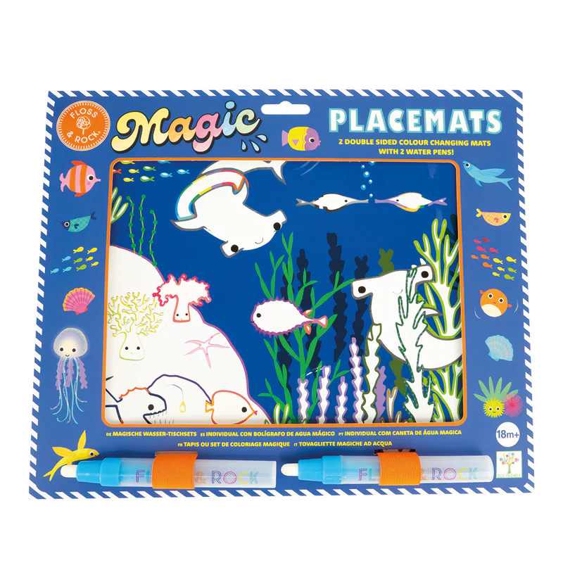 Do you want to make dinner time more fun? Of course you do! Our Magic Water Placemats are great for keeping little ones busy during mealtimes. 2 double-sided placemats in one handy pouch. Mess-free and so much fun! Simply fill up the magic pen with water and get creative colouring in the mats, revealing the colour. When playtime’s over, just wait for the mats to dry white ready for the next time. Reusable over and over again!