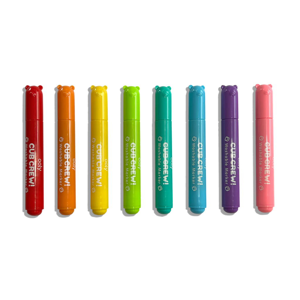 Let your creativity run wild with the Cub Crew Washable Markers! This set of 8 cute markers features bold, brilliant colors that make coloring and drawing a joy for artists of all ages. Designed for kids, teens, and even adults, these washable markers glide smoothly across the page, making them perfect for everything from doodles to detailed artwork.