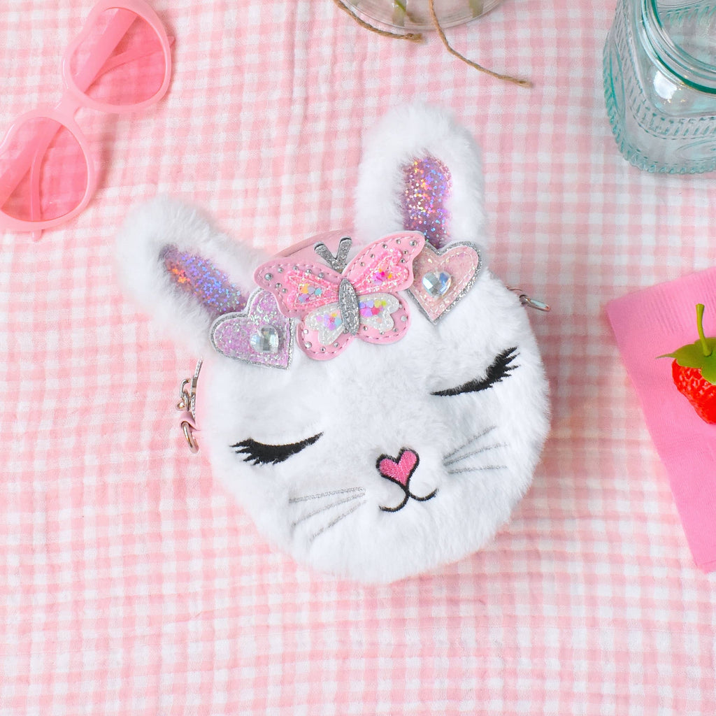 This oh-so-soft mini bag is the perfect companion for your mini! Featuring Miss Kiki the bunny embellished with a sparkling butterfly crown, this soft accessory is exactly what they need to take on the day with! Measures Approx. -5.50”H x 5.50”W x 2.00”D