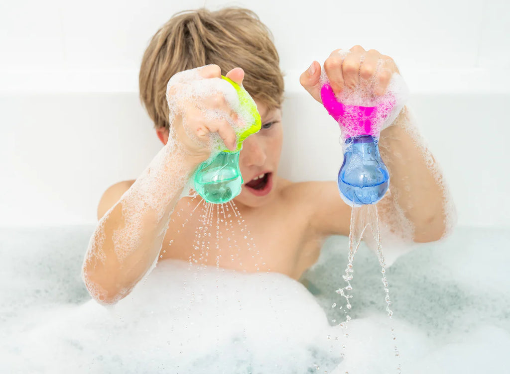 Make a splash with Skwooshlz! These water squirters are the perfect bathtime fun for little ones! Fill the Skwooshlz with water and watch with delight as your children discover the gently but unique ways they spray! Mix and match tops and bottoms for extra fun!