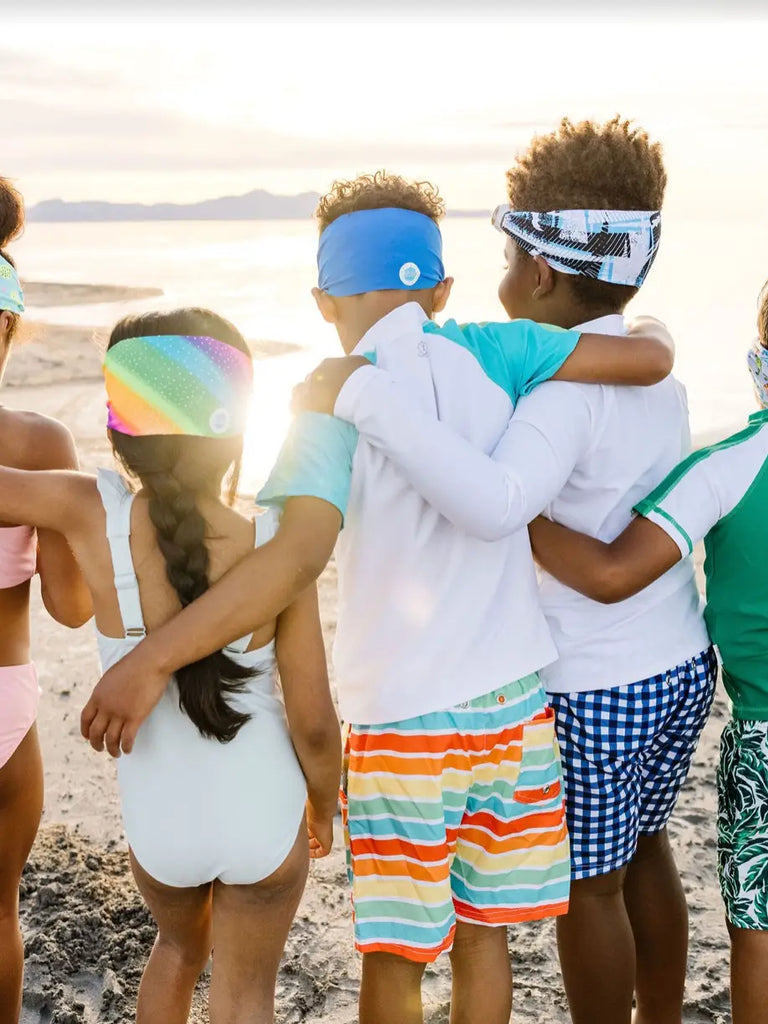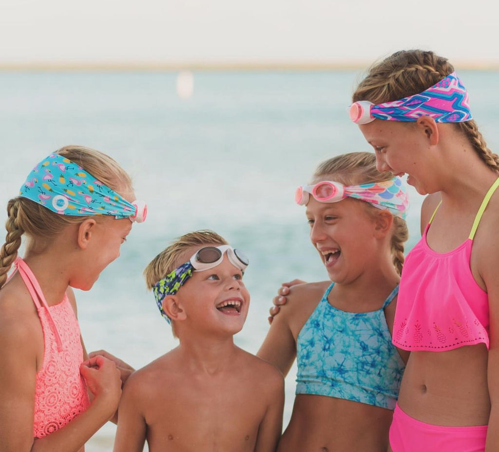 One size fits kids to adults. Ages 3+. No more pulled or tangled hair. Fun, fashionable, comfortable. High visibility, anti-fog lenses. Shatter resistant polycarbonate lenses. Hypoallergenic—latex & pvc free. Sensory friendly.