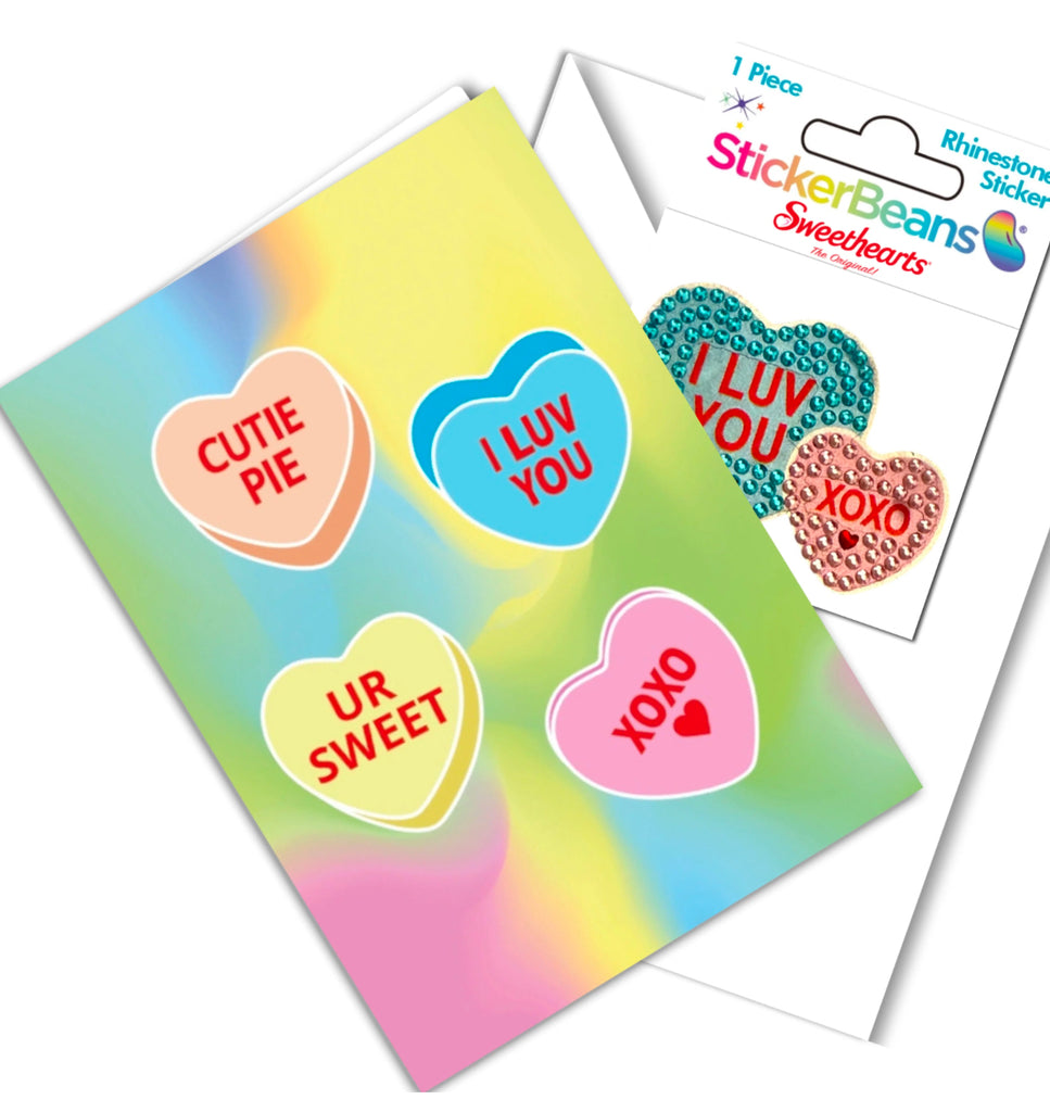 If you're looking to make someone feel extra LOVED this Valentine's Day or ANY day, this is it.  Our NEW epic Sweethearts® The Original  conversation heart card with its coordinating I LUV YOU & XOXO conversation heart sticker is a “10”.