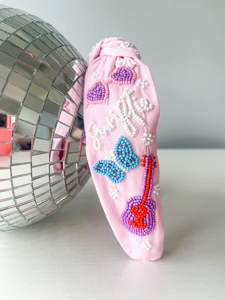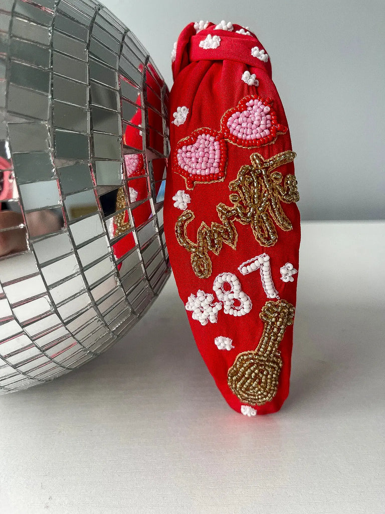 These beaded Taylor Swift headbands are perfect for concert festivities. Multiple colors are available. WIDTH: 6.5" HEIGHT: 2.5"